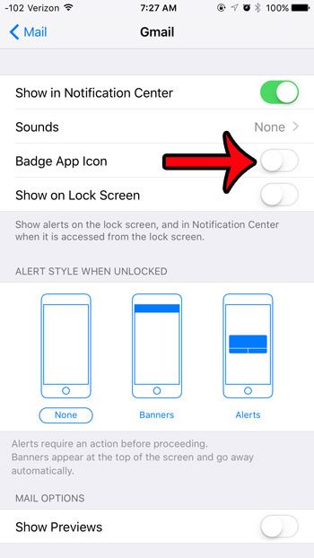 ステップ5:右側のボタンをタップしますバッジアプリアイコンそれをオフにします。