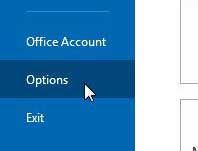 ステップ3:クリックしますオプション窓の左側にある列の下部に。