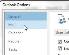 ステップ4:クリックします郵便の左列にOutlookオプションウィンドウ。