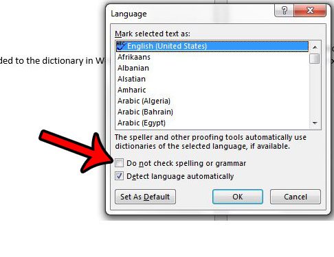 左のボックスを確認しますスペルと文法をチェックしないでくださいチェックされていません。下の画像のように見えるはずです。その後、クリックしますわかりましたこれのボタン言語ウィンドウ。