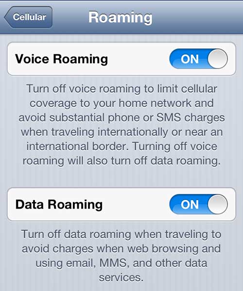 幸いなことに、デフォルトでは、iPhoneが構成されているため、ローミング中にデータを使用しないようになります。