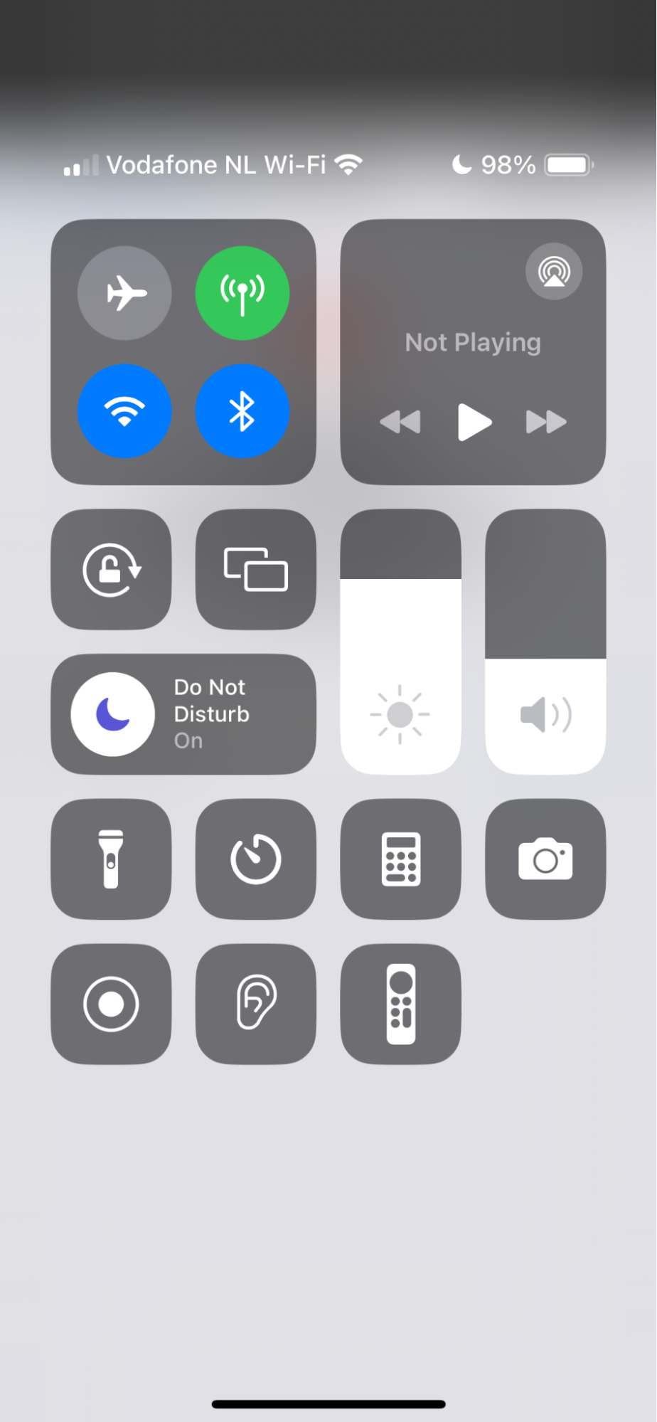 iPhoneのコントロールセンターにあります。それを開くには、画面の上部からスワイプします。