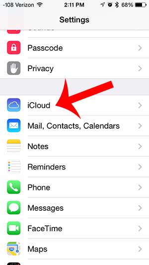 ステップ2:下にスクロールして選択しますiCloud特徴。 iCloudがデバイスでどのように構成されているかに応じて、この時点でApple IDのパスワードを求められる場合があります。