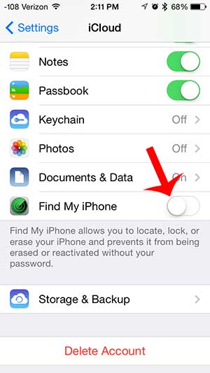 ステップ3:画面の下部までスクロールして、右側のボタンをタッチします私のiPhoneを見つけてください電源を入れます。ボタンの周りに緑のシェーディングがある場合、機能はすでにオンになります。