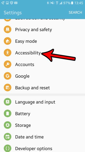 ステップ3:下にスクロールして選択しますアクセシビリティ。