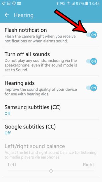 Android MarshmallowスマートフォンのテキストメッセージのFlash通知をオンにすることで、アプリメニュー、次に行きます設定>アクセシビリティ>聴覚>その後、オンになりますフラッシュ通知オプション。