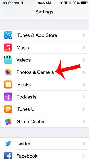 ステップ2:下にスクロールして選択します写真とカメラオプション。