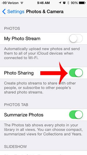私たちのガイドは、これらの手順の写真を含め、iPhone 5の写真共有をオンにする方法に関する追加情報を以下に続けます。
