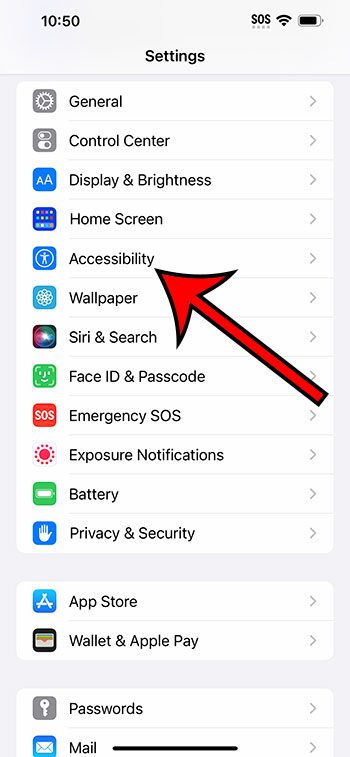 ステップ2:下にスクロールして選択しますアクセシビリティオプション。