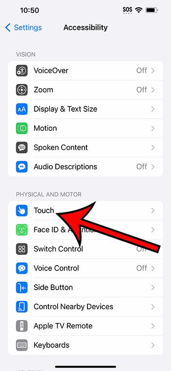 ステップ3:選択します触るこのメニューからオプション。