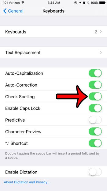 ステップ5:右側のボタンをタップしますスペルを確認してください。これでオフにすることができます自動修正使用したくない場合はオプション。