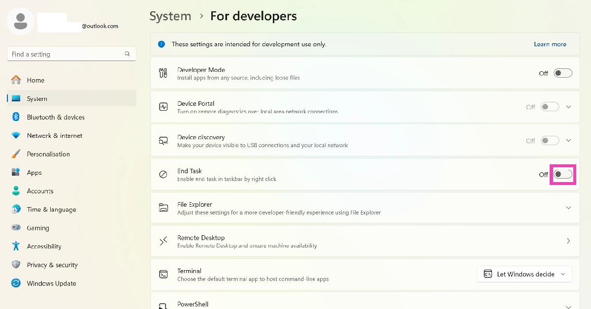 Windows11 PCまたはラップトップのタスクバーでHidden Endタスク」オプションをオンにする方法