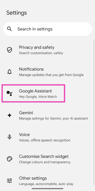 ステップ3:選択しますGoogleアシスタント。