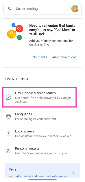 Google Assistantの音声マッチをオフにします