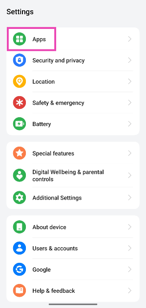 ステップ1:行きます設定選択しますアプリ。