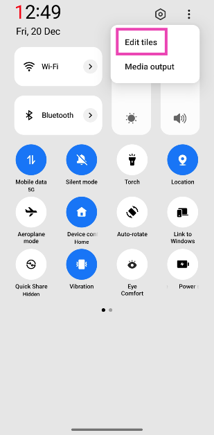 ステップ1: スワイプダウンからステータスバークイック設定メニューを表示します。