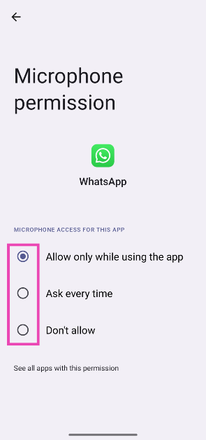 行きます設定>アプリ、アプリを選択して、移動します権限>マイク、「許可しないで」を選択します。