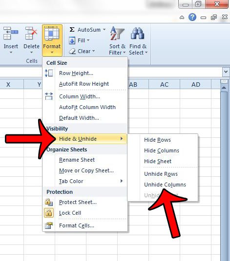 この同じ方法は、スプレッドシートの最初の行を非表示にするために機能することに注意してください。列を解放します代わりにステップ6のオプション。