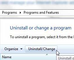 ステップ3:コンピューターからアンインストールするアドオンをクリックして、クリックします。アンインストール/変更プログラムのリストの上の水平青いツールバーのボタン。