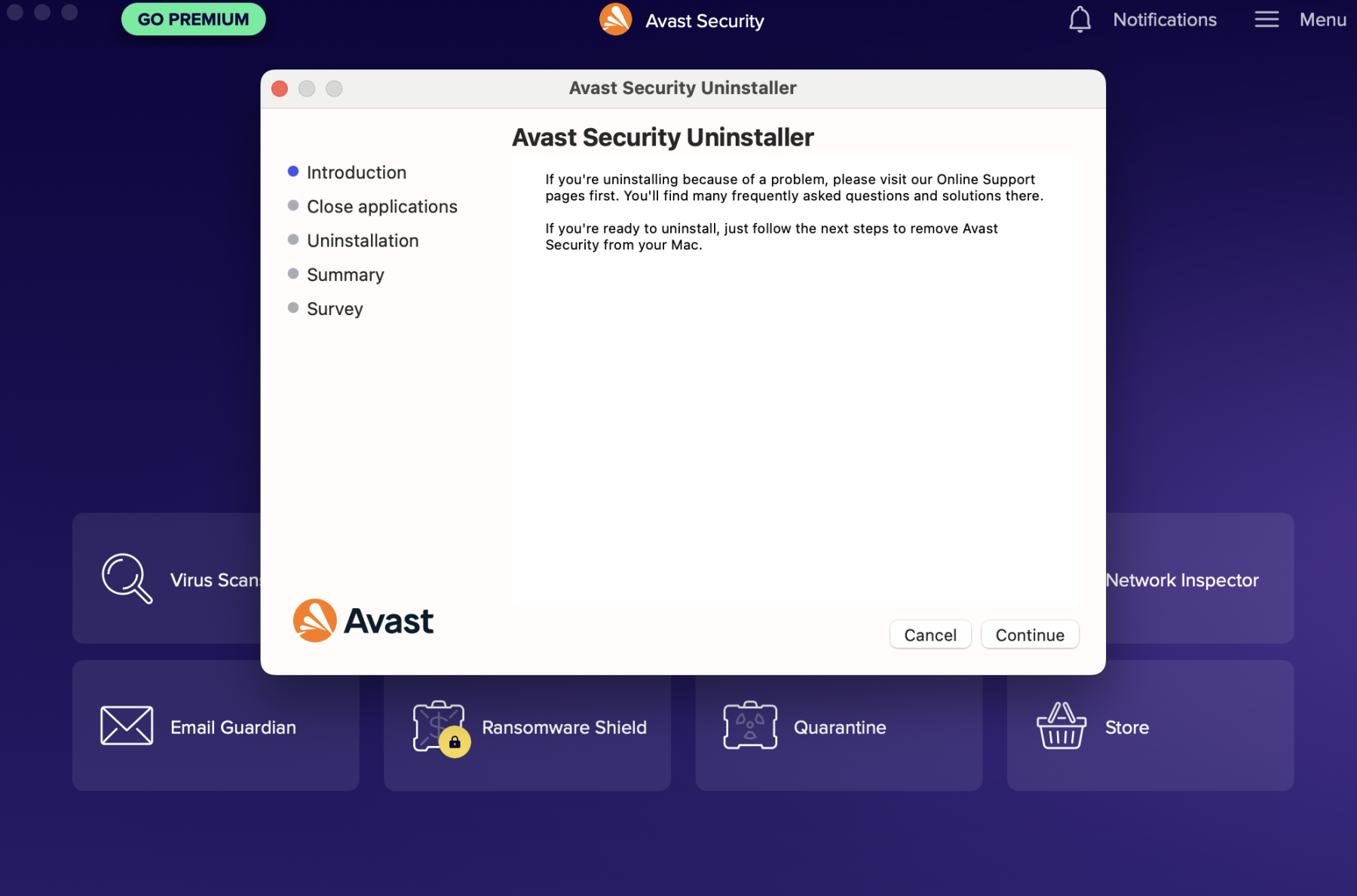 たとえば、Avast Antivirusにはネイティブのアンインストラーがあり、アプリを削除するプロセスは次のようになります。