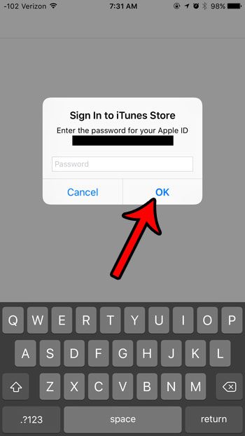 - プロンプトがある場合は、iTunesパスワードを入力してください。