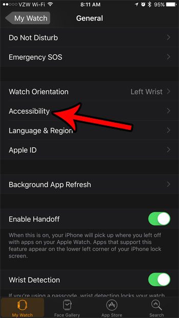 上記のステップで述べたように、時計バージョンとWatchOSバージョンに応じて、このメニューのトップレベルでアクセスブリティオプションを見つけることができる場合があります。
