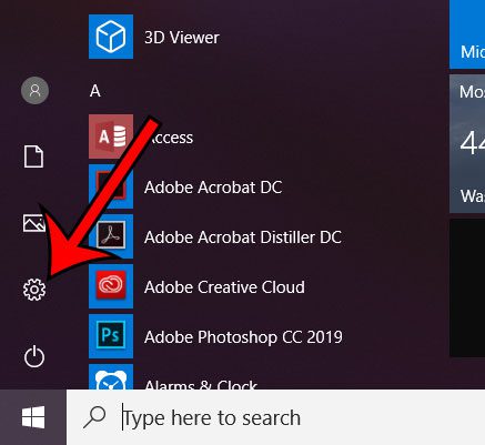 ステップ2:スタートメニューの左下にあるギアアイコンを選択します。