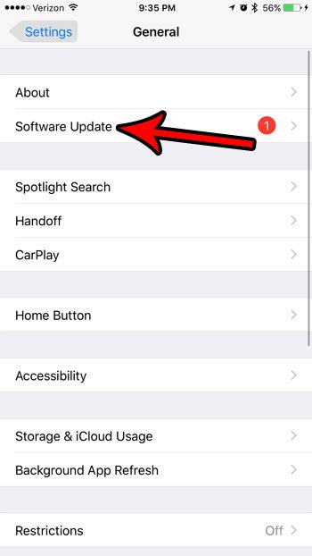 ステップ3:タッチしますソフトウェアアップデート画面の上部近く。