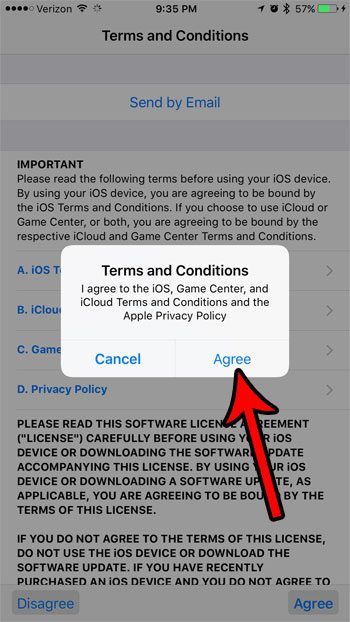 ステップ6:タッチします同意する画面の下部にあるボタン。