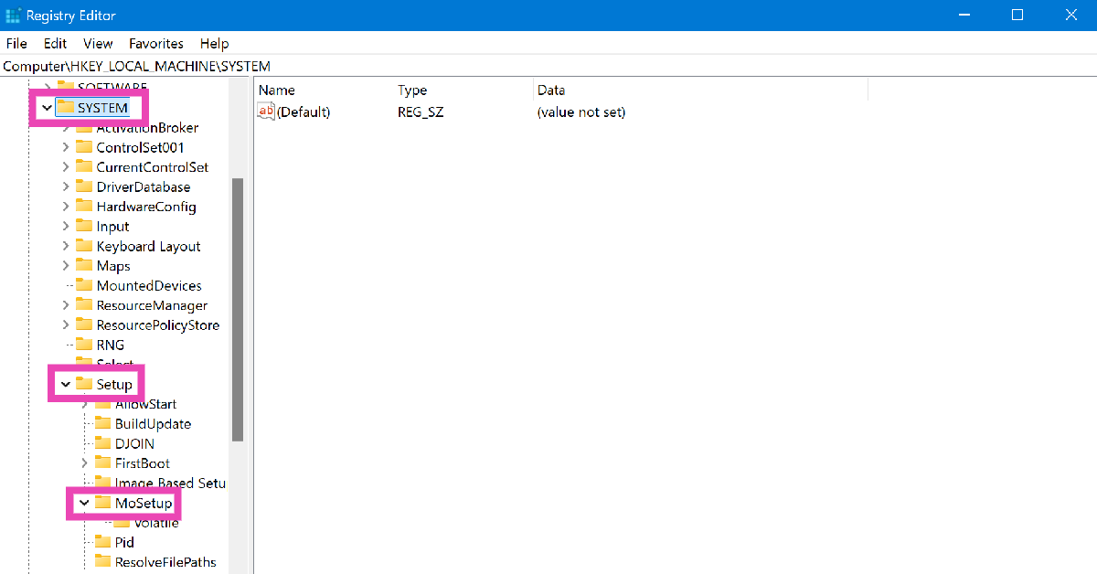 ステップ2:サイドバーを使用してナビゲートしますhkey_local_machine> system> setup> mosetup。