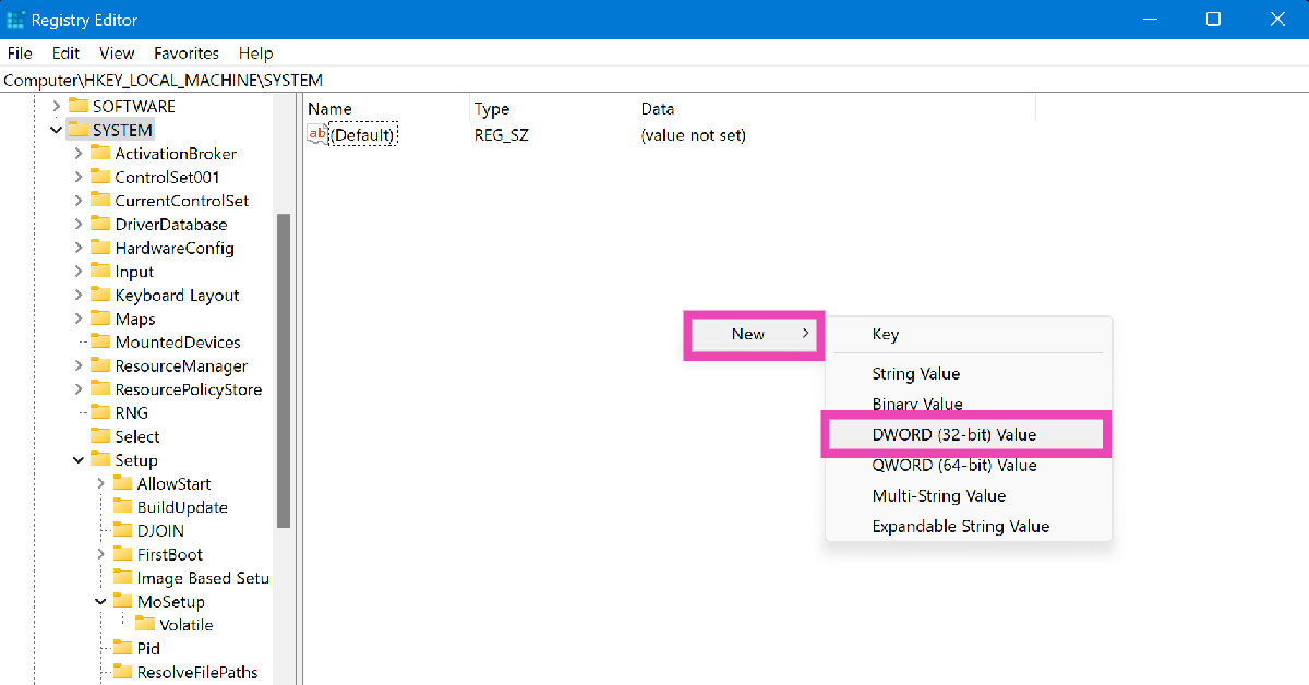 ステップ3:空の場所を右クリックして選択しますnew> dword(32ビット)値。