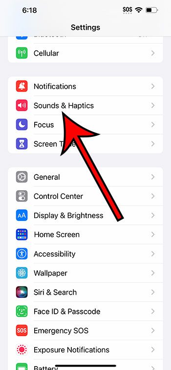 ステップ2:下にスクロールして選択しますサウンドとハプティックスオプション。