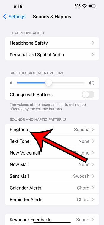 私たちのガイドは、これらの手順の写真を含むiPhoneの着信音の切り替えに関する追加情報を以下に続けます。
