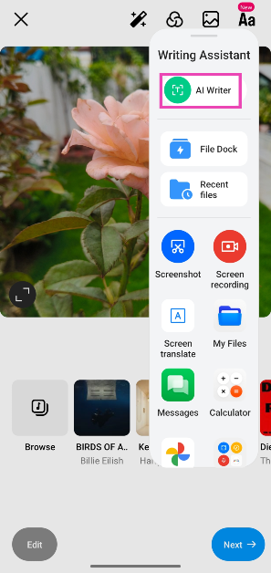 ステップ3:タップしますAIライター。このツールは、選択した画像の画面をスキャンします。