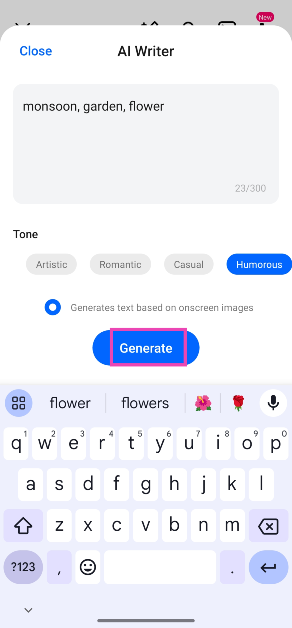 Oppo電話でAIライティングアシスタントを使用してキャプションを作成する