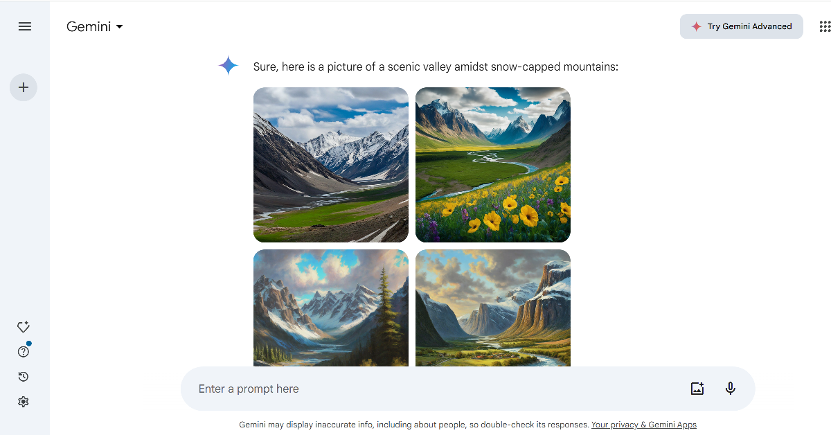 ジェミニを介して画像を生成しようとしている場合は、チャットボットがまだ人間の画像を作成できないことを知っておく必要があります。画像のプロンプトが人間に関与する場合、Dall-E、Midjourney、Dreamstudioなどの他のAI画像ジェネレーターを使用する方が良いでしょう。