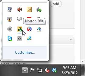 ステップ1:ダブルクリックしますノートン360コンピューター画面の右下隅にあるシステムトレイのアイコン。