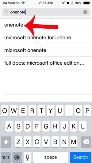 ステップ3:画面上部の検索フィールドに「OneNote」と入力し、「OneNote」検索結果を選択します。