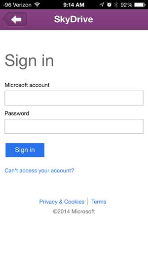 このチュートリアルでは、既にOneNoteを持っていること、およびアカウントに登録するMicrosoftアカウントとパスワードを知っていると想定しています。さらに、iPhoneからアクセスしたいOneNoteワークブックは、OneDrive/SkyDriveクラウドアカウントに保存する必要があります。