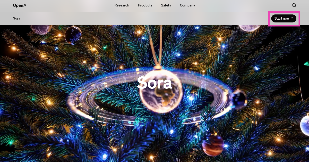 ステップ1:行きますhttps://openai.com/sora/クリックしてください今すぐ始めましょう。オープンAIアカウントにログインします。