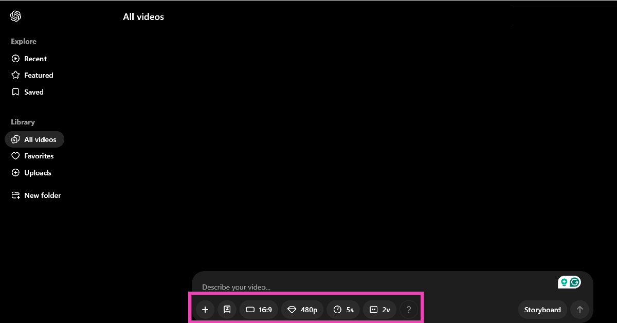 注記:SORAビデオジェネレーターも提供していますストーリーボード'ビデオのさまざまな部分に個別のプロンプトを入力できるオプション。これにより、プロジェクトをより編集することができます。このオプションは、あなたがいるときにも利用できます再カット'ビデオ。