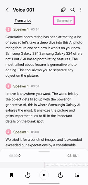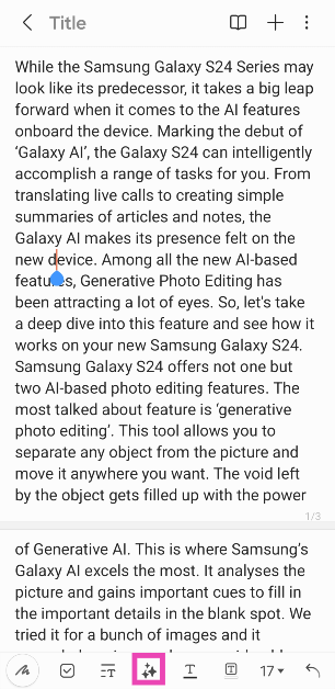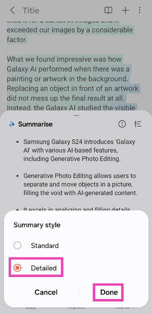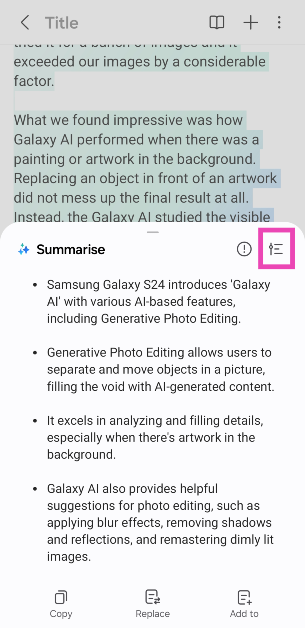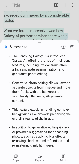 ステップ5:Galaxy AIはaを生成しますまとめテキストの。