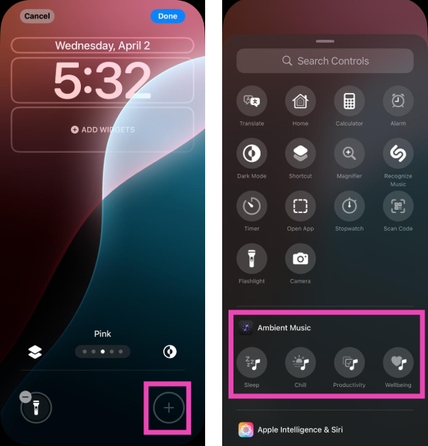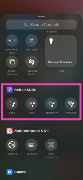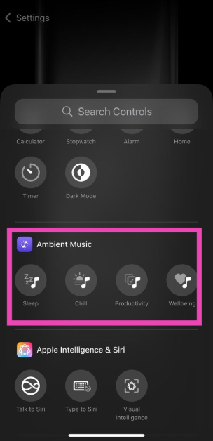ステップ5:タップしますプラスアイコンそして、選択しますアンビエントミュージックコントロール。