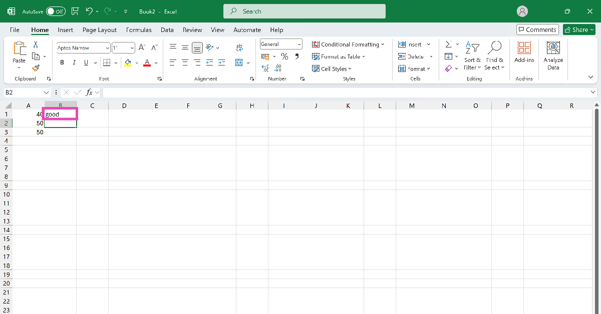 ステップ1:生徒の名前を入力してください行aそして彼らのスコア行b。