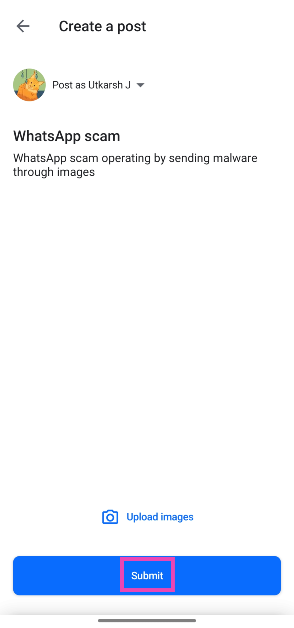 ステップ5:打つ提出する終わったら。あなたの投稿は詐欺フィードに表示されます。
