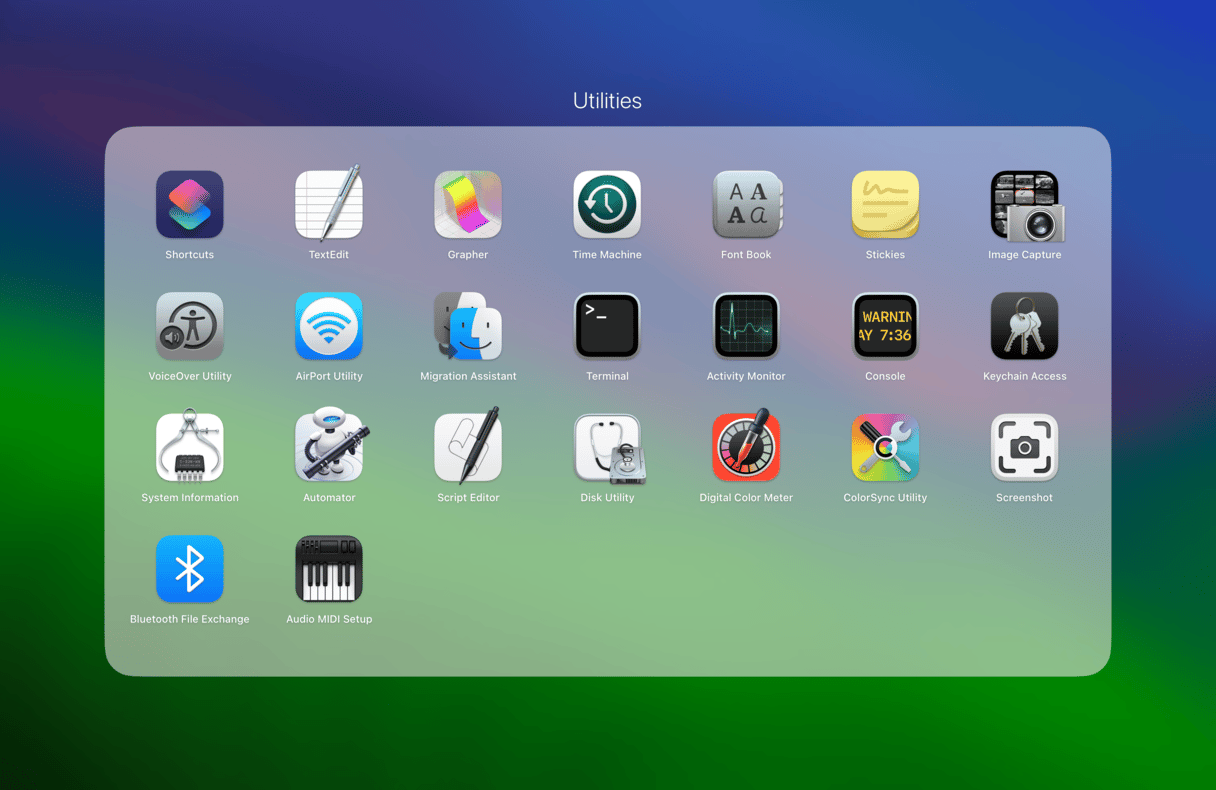 または、そこからLaunchPadにアクセスしてターミナルを開くこともできます。通常、LaunchPadの最初のページにあるユーティリティフォルダーにあります。