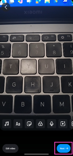 ステップ6:バックグラウンドミュージック、ステッカー、字幕、その他のアドオンをリールに追加します。打つ次。