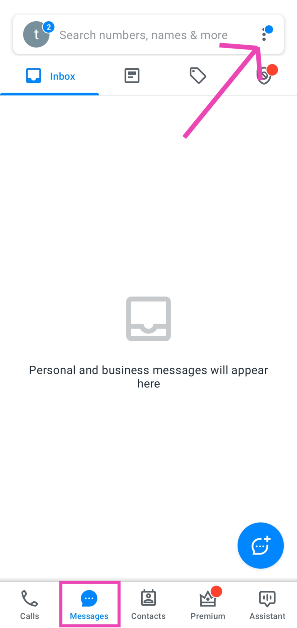 ステップ2:に切り替えますメッセージタブそしてヒットします楕円(3つのドット)画面の右上隅に。