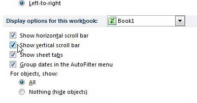 幸いなことに、Excel 2010オプションメニューには、プログラムに表示されなくなったスクロールバーを削除または復元できる設定があります。
