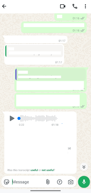 WhatsAppは、AIを使用して音声ノートを転写するかどうかを述べていません。ただし、転写に言語パッケージが必要なため、プロセスがデバイス自体で行われる可能性があります。